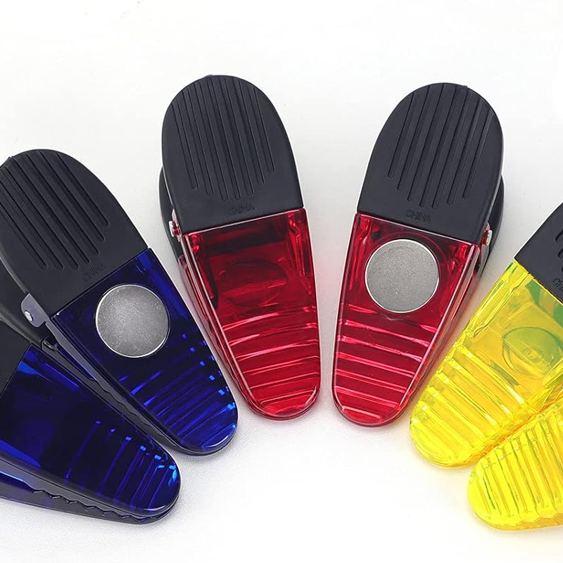 Includes 6 clips in 3 different colors. Can be used to hold photos, notes, shopping lists, etc. Also great for organizing letters, documents, or folders. Features a strong magnet on the back for easy attachment to refrigerators, stoves, or any metal surface. Soft, comfortable, and non-slip contact points and an open design securely hold items in place.